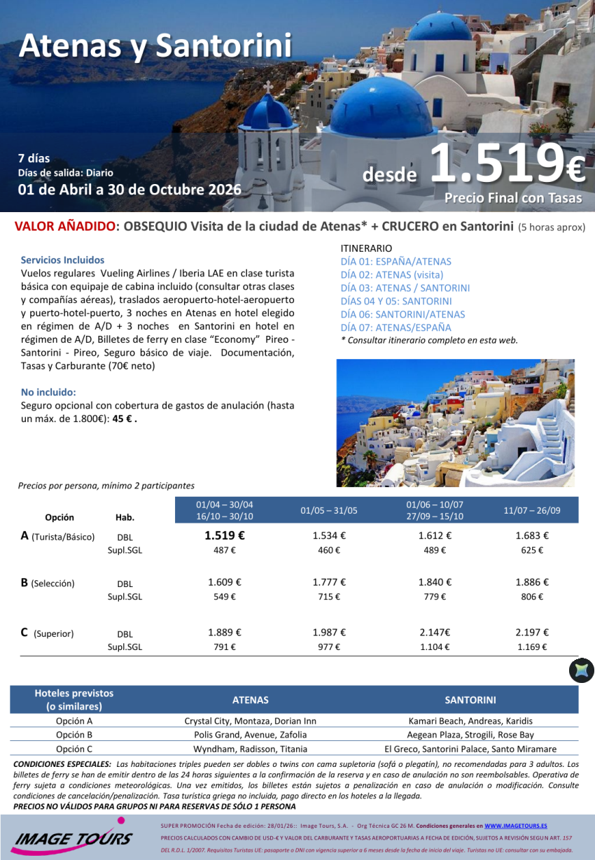 GRECIA verano 2026. Combinado Atenas y Santorini, 7 días desde 1.519€